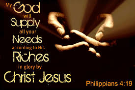 Philippians 4:19 – “And my God shall supply all your needs according to His riches in glory in Christ Jesus.” NASB