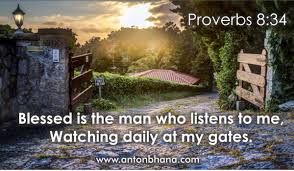 Proverbs 8:33-35 – “Hear instruction and be wise, And do not disdain it. 34 Blessed is the man who listens to me, Watching daily at my gates, Waiting at the posts of my doors. 35 For whoever finds me finds life, And obtains favor from the LORD;” NKJV