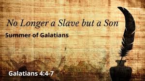 Galatians 4:1-7 – “Now I say, as long as the heir is a child, he does not differ at all from a slave although he is owner of everything, 2 but he is under guardians and managers until the date set by the father. 3 So also we, while we were children, were held in bondage under the elemental things of the world. 4 But when the fullness of the time came, God sent forth His Son, born of a woman, born under the Law, 5 so that He might redeem those who were under the Law, that we might receive the adoption as sons. 6 Because you are sons, God has sent forth the Spirit of His Son into our hearts, crying, ” Abba! Father!” 7 Therefore you are no longer a slave, but a son; and if a son, then an heir through God.” NASB