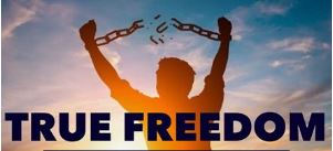 The only True Freedom is through the shed blood of Jesus and the Grace of God. If we receive the forgiveness of sin and are born again, we experience True Freedom! A person thusly free can be imprisoned, chained, and otherwise enslaved physically, but they will never be a Slave in their heart or mind because the Son has set them free!