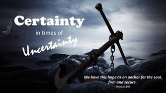 There is not much certainty in this world in which we live. We do not know what a day holds or what the morrow will bring. We have only the ability to look through a glass darkly and can only see the beginning from the end. We know in hindsight but do not have the absolute foresight to know the certainties of the future or even the uncertainties. We are limited creatures living in a temporal world that is passing away.