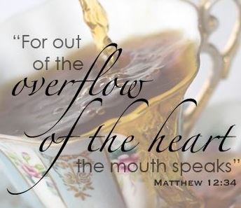 Jesus said that we are to abide IN Him, and His words are to abide IN us. One translation renders the words of Jesus, “Out of the overflow of the heart, the mouth speaks.” The overflow, I like that! What fills our hearts is expressed in our words and actions. Where our treasure is, our heart is also there. The heart is the seat of who we are, and what we are is expressed from it.